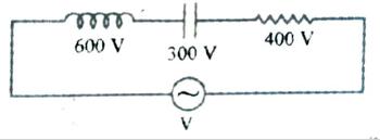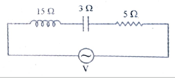 | (a) At resonance, in an LCR circuit, the emf and current are (i) in phase (ii) out of phase (iii) having a phase difference of π/2 (iv) having a phase difference of π/6 (b) In the given circuit, find the value of V |