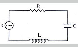 | A series LCR circuit connected to an ac source is shown below: (a) Write an expression for impedance offered by this circuit. (b) Under what condition this circuit is used for tuning radio ? |