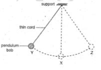 | A simple pendulum starts with its bob at position X, shown in the figure. The bob is pulled aside to Y and then released. It swings from Y to Z and back to Y. a) Take suitable words from the bracket and fill in the gaps. (Potential, constant, kinetic, different, work, resonance) To move the bob from X to Y, ......… has to be done on it and its ..........… energy increases. As it moves from Y to X, some of this energy is converted to .........… energy. Throughout the swing from Y to Z and back to Y, the total energy is ........... b) What is the acceleration of the bob when it is at X? c) What are damped oscillations? |