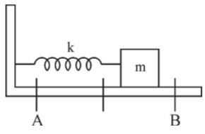| Simple harmonic motion of a block of mass m attached to a spring is shown in figure. The distance between extreme points A and B is 10 cm. Take the direction from A to B as the positive. Redraw the given table and give the signs of velocity, acceleration and force.