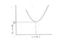 | Figure shows a graph between angle of incidence and the respective deviation of light when it is passed through an optical element. (b) Using a schematic diagram derive an expression for the fringe width in Young’s double slit experiment. a) Name this optical element. b) What will happen to the angle of minimum deviation D if it is completely immersed in water? Justify your answer. c) Obtain an expression for the refractive index of the material of this optical element. |