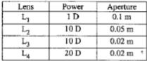 | Using the data given in figure, state as to which of the given lenses will you prefer to use as i) an eye-piece and ii) an objective to construct an astronomical telescope? Give reason for your answer. |