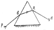 | A) An equilateral glass prism is placed on a horizontal surface. A ray PQ is incident on it. For minimum deviation: i) PQ is horizontal ii) QR is horizontal iii) RS is horizontal iv) None of these B) A thick lens gives coloured images due to .............. C) In a compound microscope the nature of the intermediate image is ...... D) Based on refraction and total internal reflection, explain the formation of rainbow |