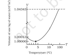 | Draw a graph showing the variation of volume of a given mass of water with temperature from 0°C. In the graph mark the temperature at which water has maximum density |
