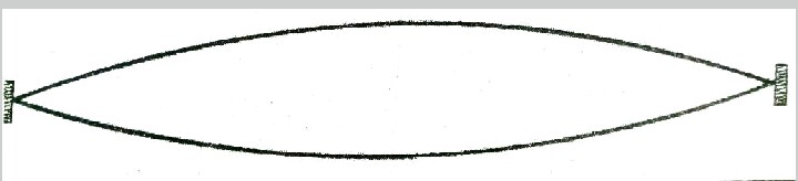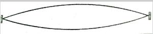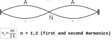 | The fundamental mode of vibration of a atretched atring is shown in the figure a) Draw the second and third harmonics b) Prove that frequencies produced in the string are in the ratio of 1:2:3 c) Let the fundamental frequency is 45 Hz and the length of the wire is 87.5 cm. If linear density of the wire is 4.0 x 10-2 kg/m. Find the tension in the string |