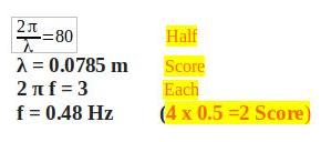 | A wave traveling along a string described by y(x, t) = 0.005 Sin (80.0x – 3.0t) in which the numerical constants are in SI units. Calculate the wavelength and frequency of the wave |